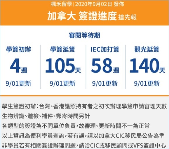 加拿大簽證審理時間更新
