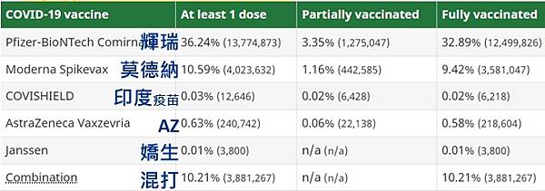 - 其中約19%接種一劑COVID-19疫苗